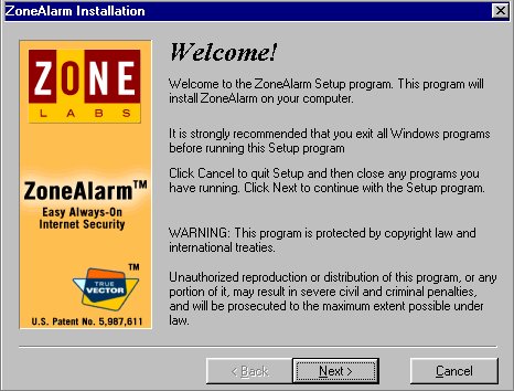 zu der Installation von ZoneAlarm