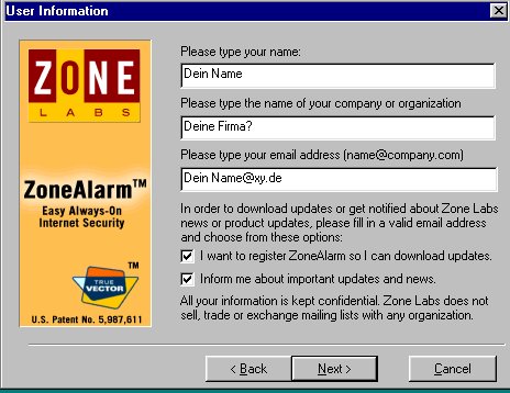 Dich zu registrieren um über Updates seitens Zone Labs auch